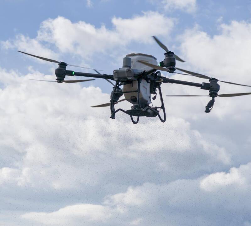 Avec le sous-semis par drone, l’épandage est possible, quelles que soient la hauteur des cultures et la praticabilité du sol. Lors du semis, les semences sont réparties à la surface du sol; il convient donc d’opter pour des graines qui germent à la lumière.